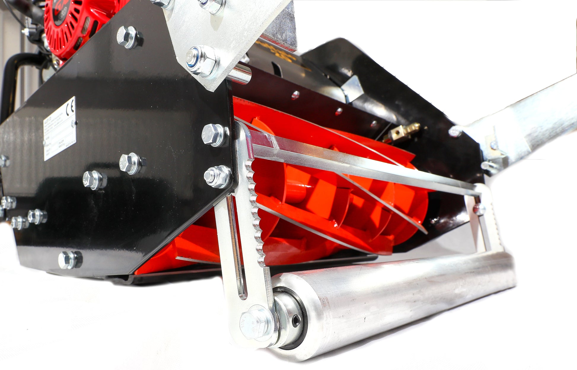 | Cylinder engagement | Handle-mounted lever engaging twin V belts via cable |
