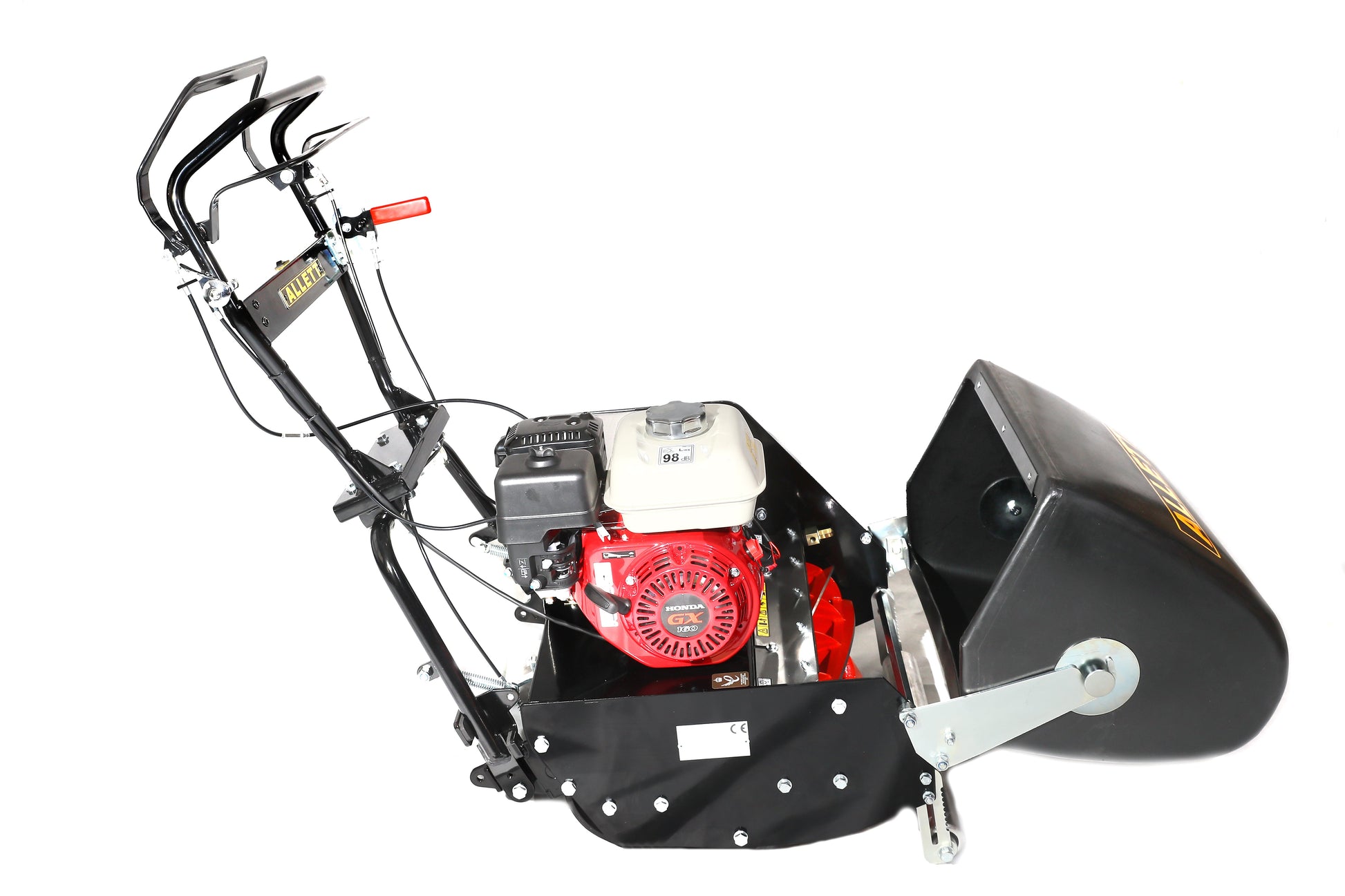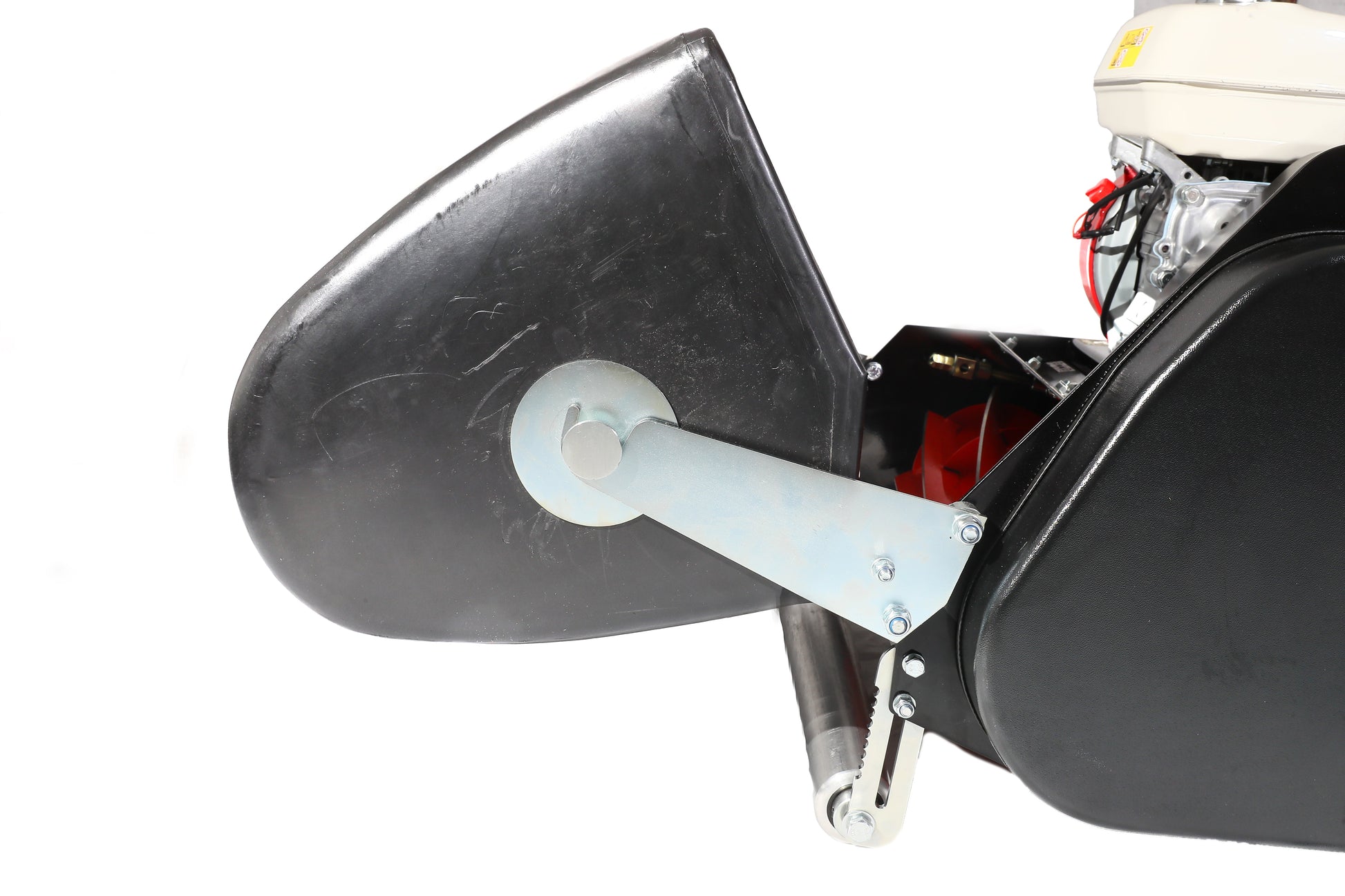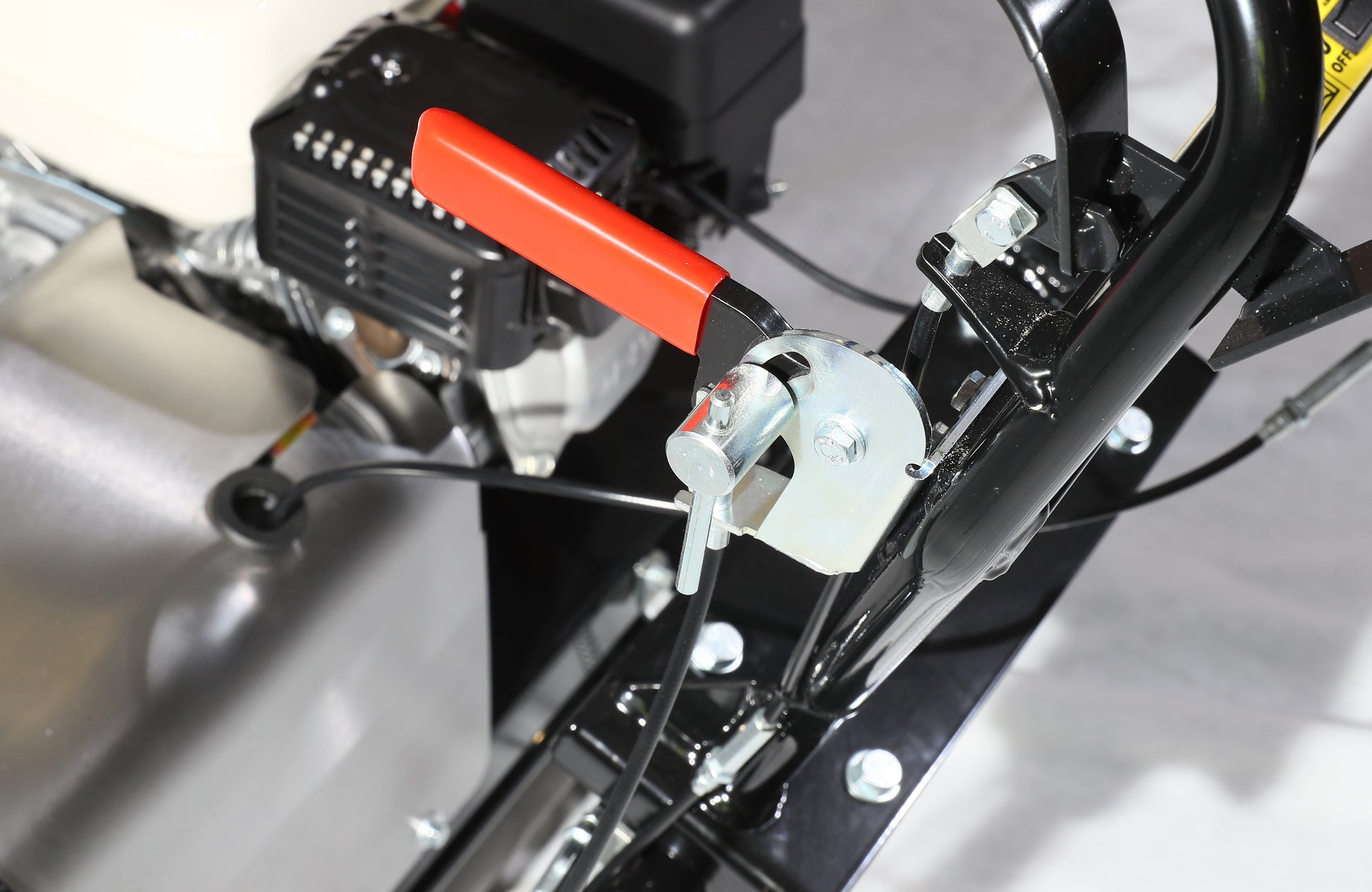 | Drive engagement | Handle-mounted lever engaging V belt via cable |