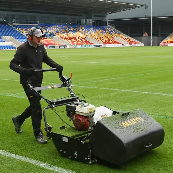 The Allett C-27 machine delivers a wide range of professional turf maintenance functions from a single pedestrian controlled machine to suit all maintained turf areas.