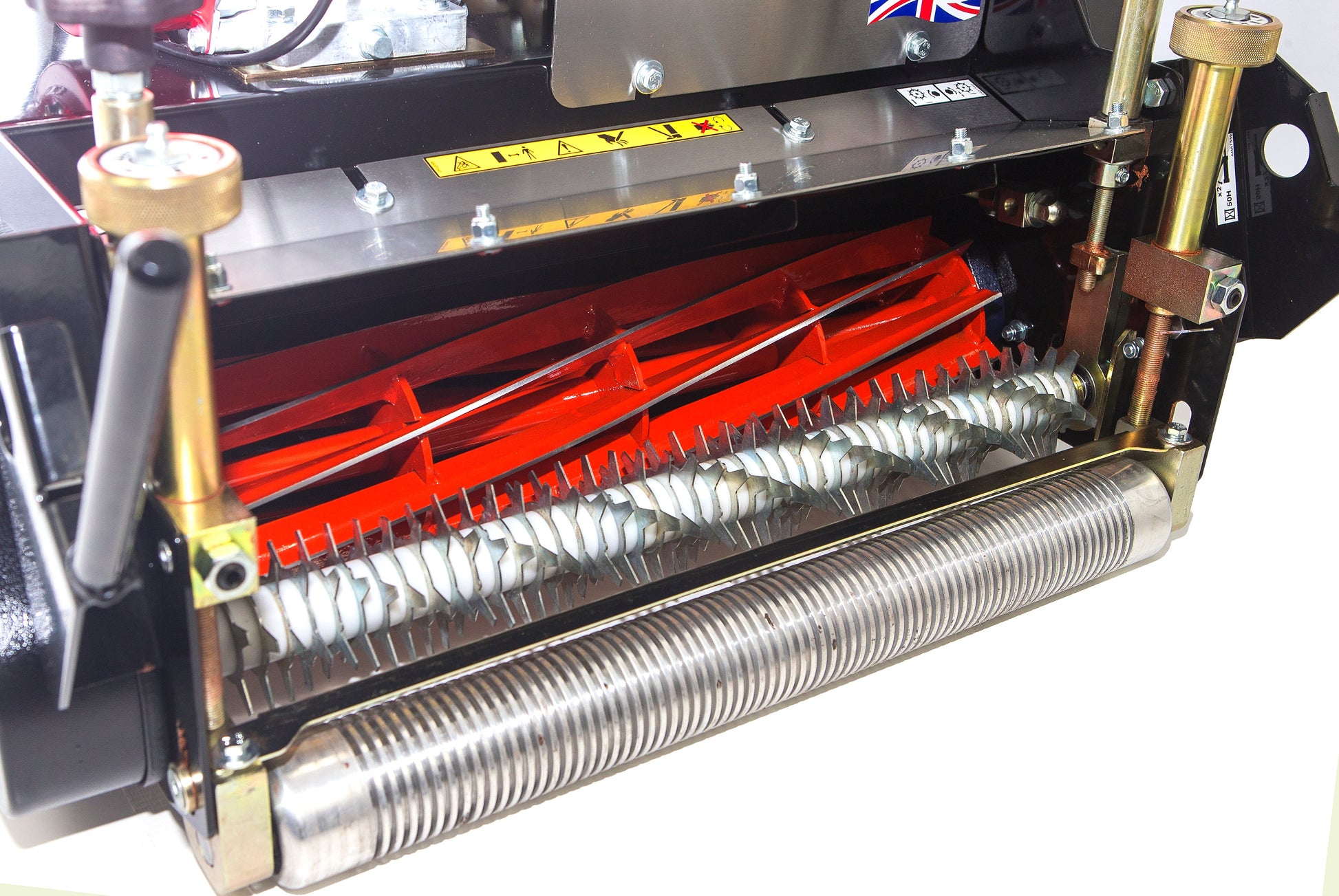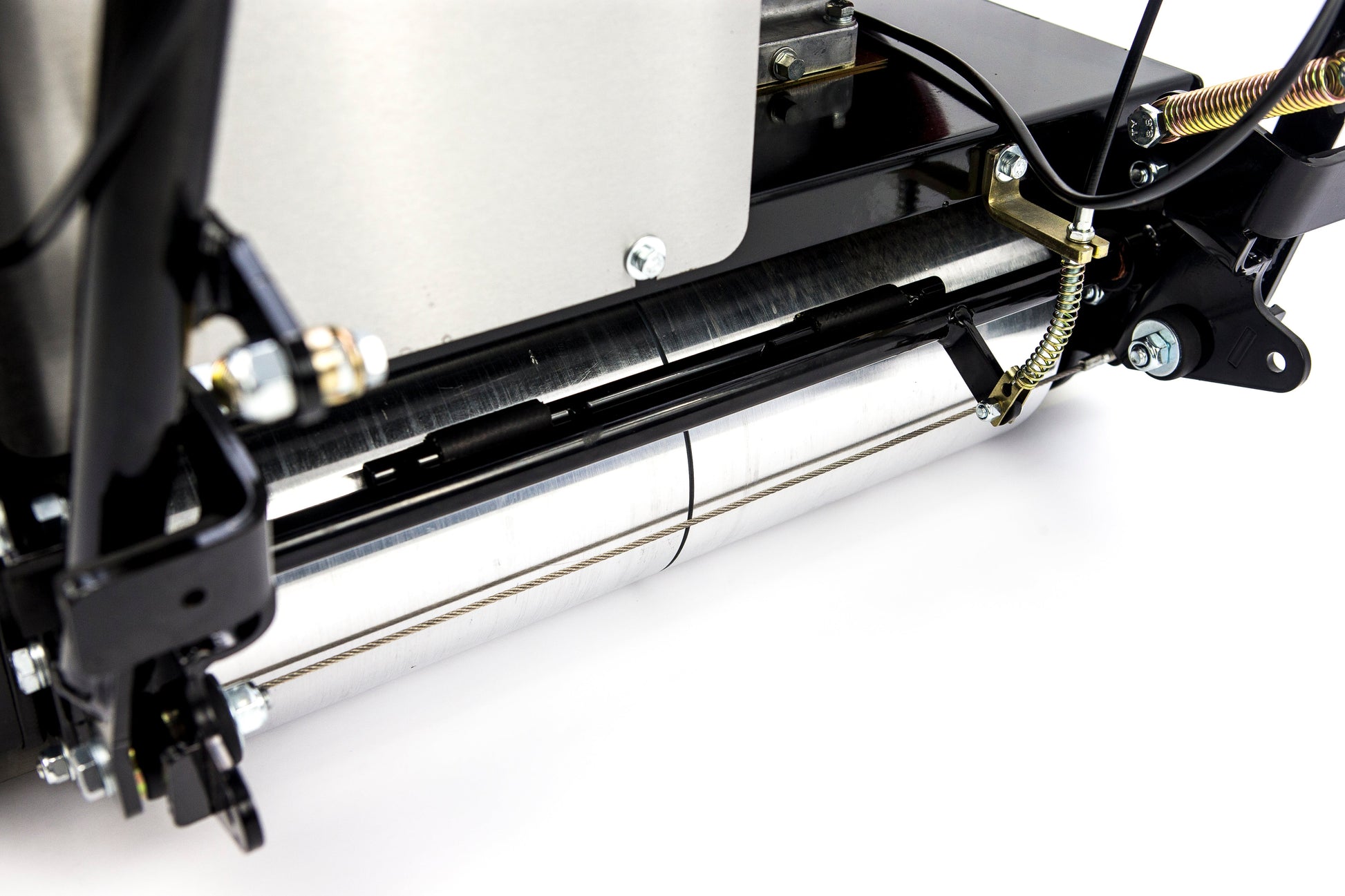 | Cylinder engagement | Handle-mounted lever engaging twin V belt drive via cable |